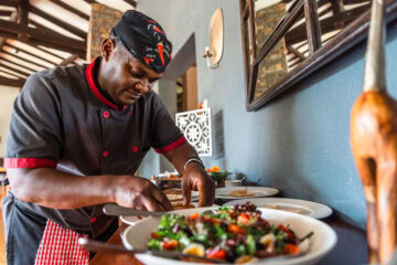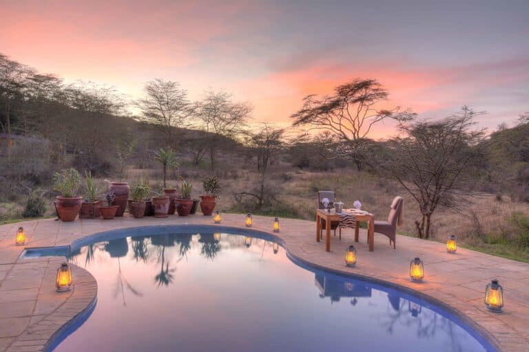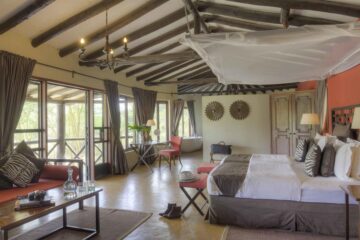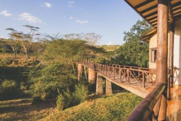 The Emakoko is a 24-bed luxury lodge artfully built into the side of a valley on the Mbagathi River on the border of Nairobi National Park.
