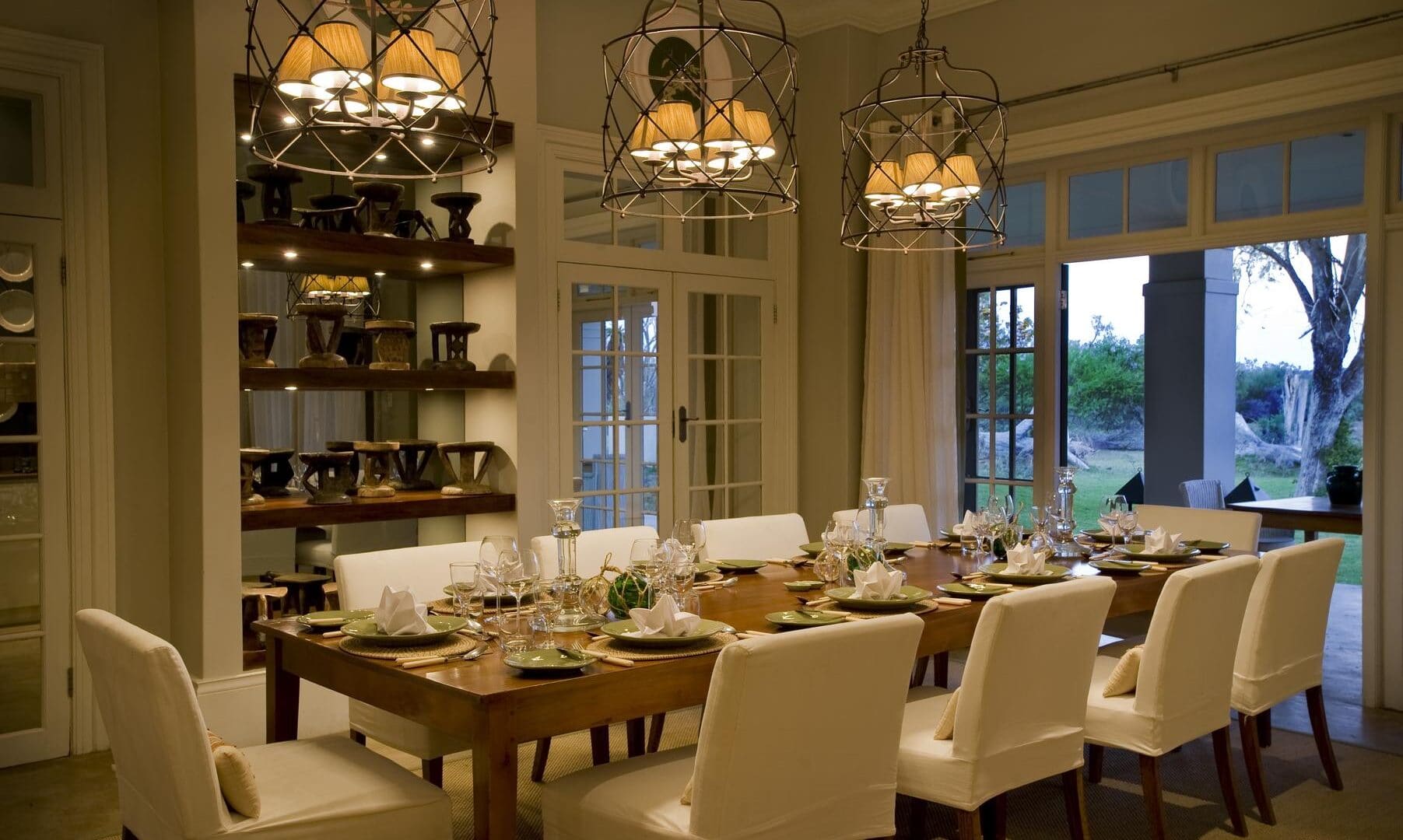 Upon arrival, glass double doors reveal breathtaking views of the mountain landscape, with an infinity pool overlooking a waterhole. The Manor features four spacious suites, each with a private patio and en-suite bathroom. The open-plan main area includes living spaces, a dining room, and a bar.