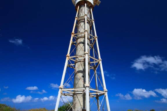 The landing deck, at sea level, has a lounge area and bathroom facility.