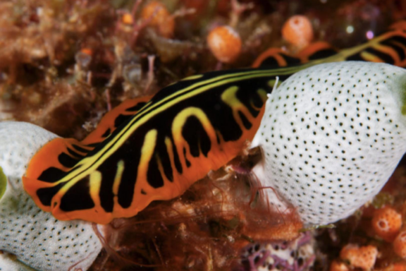 Then downstairs – the magical feeling of lying on a soft double bed surrounded by panes of glass affording almost 360 degrees viewing – watching the shoals of reef fish and exquisite, often rarely seen individuals visiting your windows.