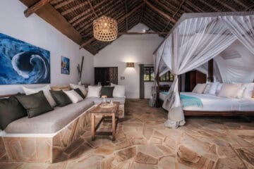 On arrival at the room, along with your service fundi and boat captain, you will get shown the ins and outs of your private floating island.