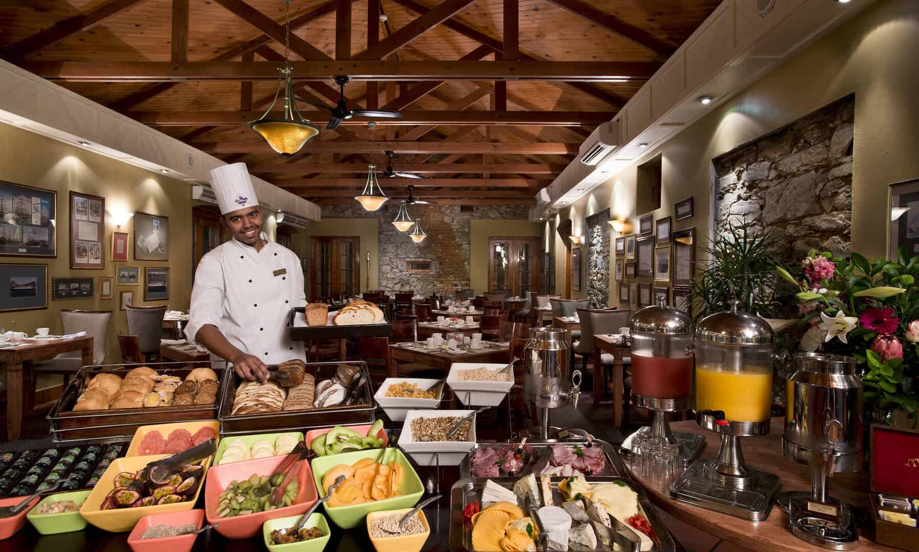 The restaurant and lobby are built over the original well and holding cells for prisoners en route to Robben Island some 300 years ago.