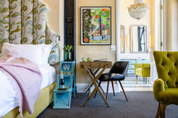 Each room has been individually designed and decorated by the stylish wand of Liz Biden. Colourful and eclectic pieces juxtapose the modern, industrial architecture.