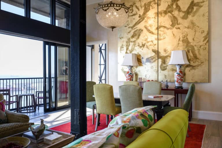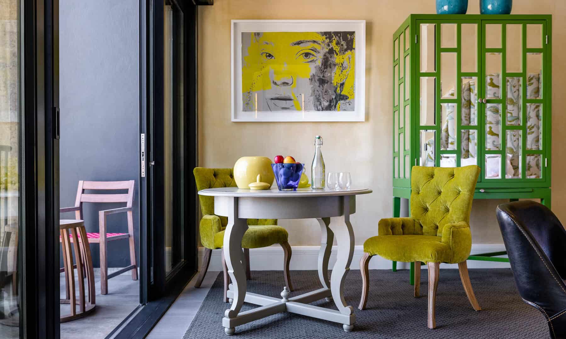 Each room has been individually designed and decorated by the stylish wand of Liz Biden. Colourful and eclectic pieces juxtapose the modern, industrial architecture.