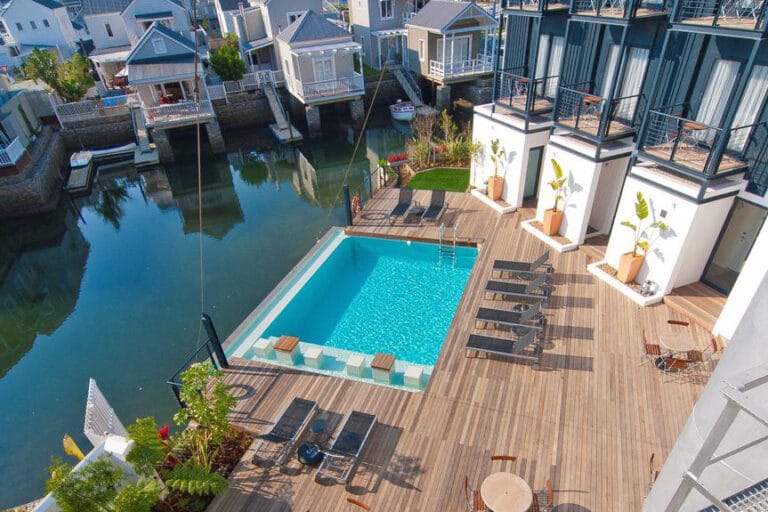 This exceptional hotel is situated on the picturesque Thesen Island, within the scenic Knysna estuary and occupies an old power station building. Some of the machinery which was used in this power station forms an integral part of the hotel’s aesthetics.