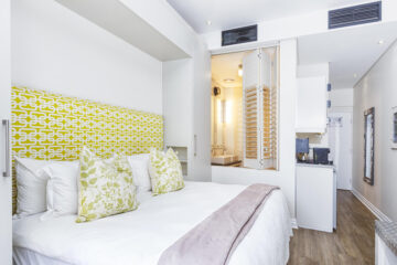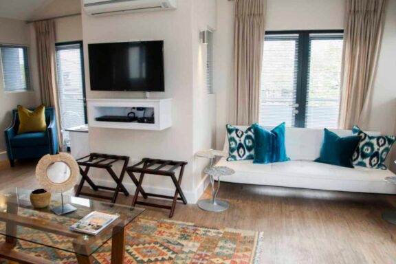 The hotel features seventeen standard rooms, six luxury rooms, a honeymoon suite, and a self-catering Water Club apartment.