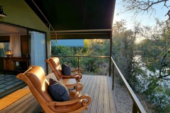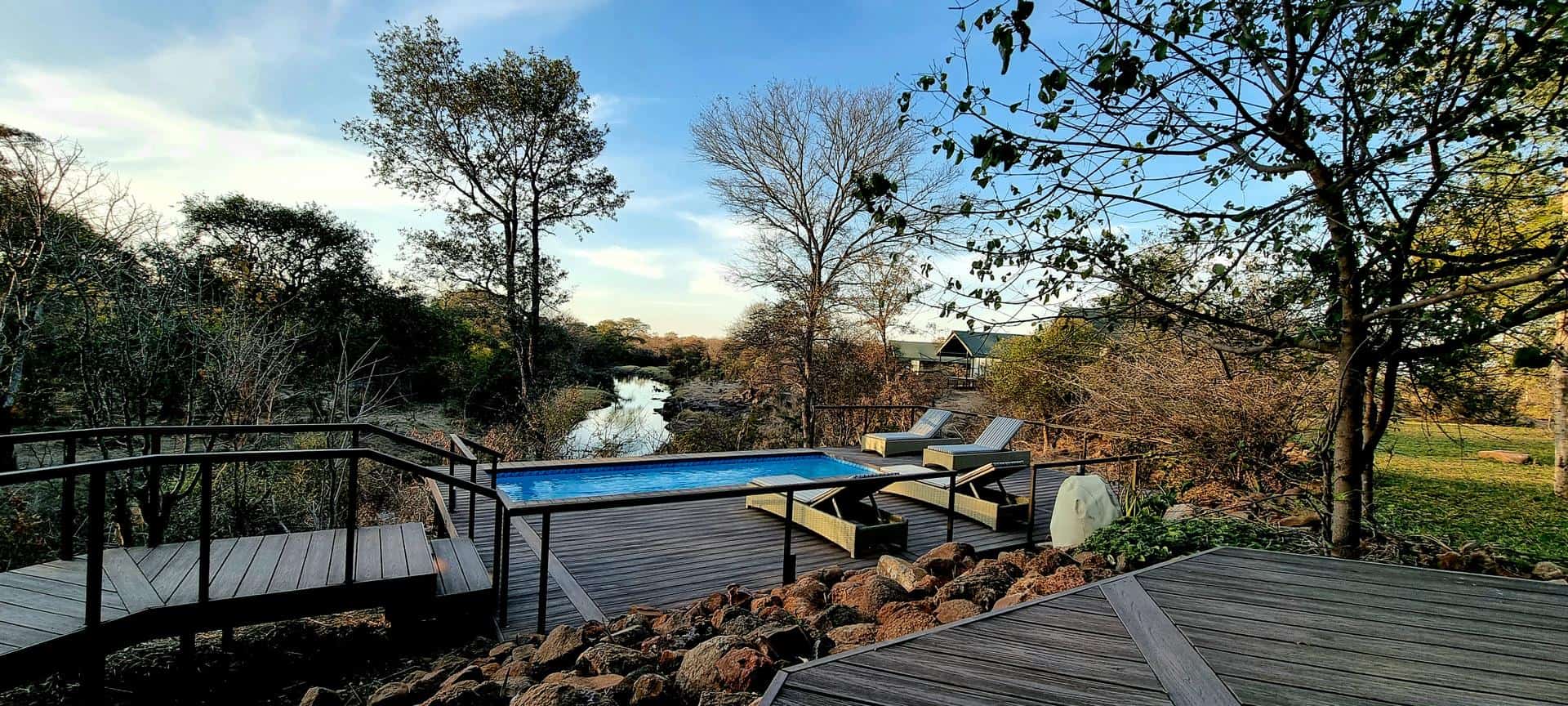 The lodge boasts panoramic views of the Masuwe River, providing a stunning backdrop for our main area, complete with a swimming pool and sunken fireplace on the expansive deck. A short twenty-minute transfer from the camp brings you to the iconic Victoria Falls, where you can experience the thrill of Africa's Adventure Capital.