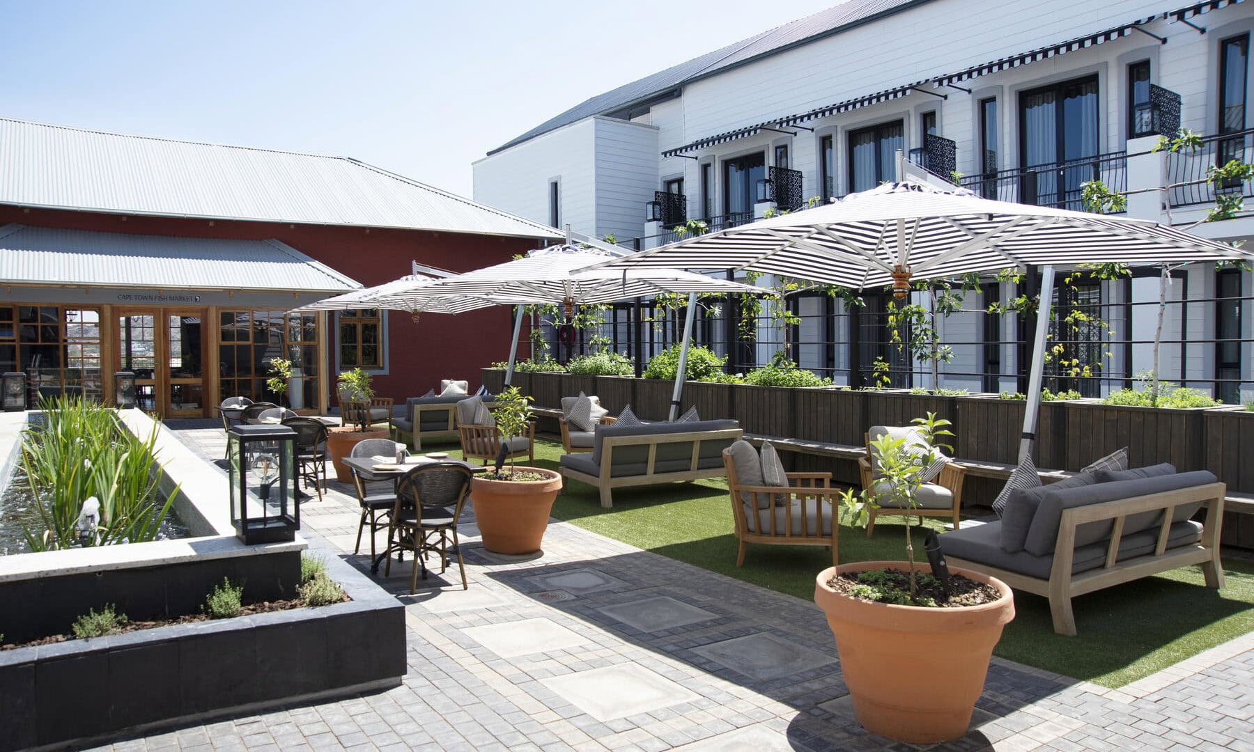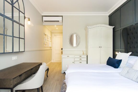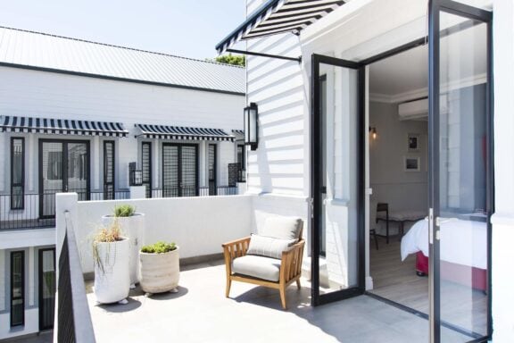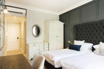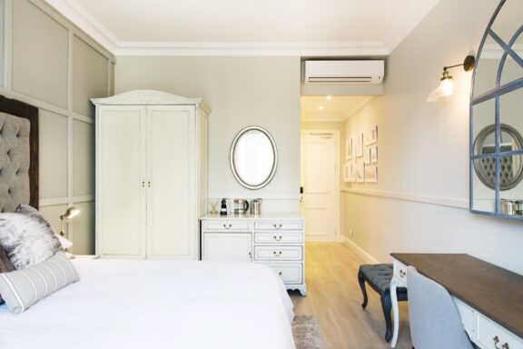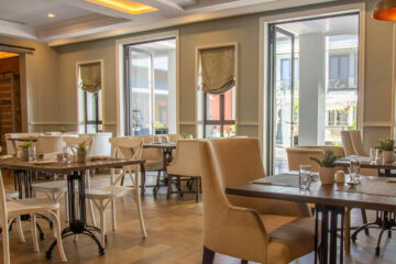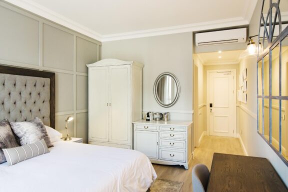 The elegant 41-bedroom hotel wraps around a heritage building, creating an inviting courtyard. This design complements its historic character, while modern amenities ensure the utmost comfort.