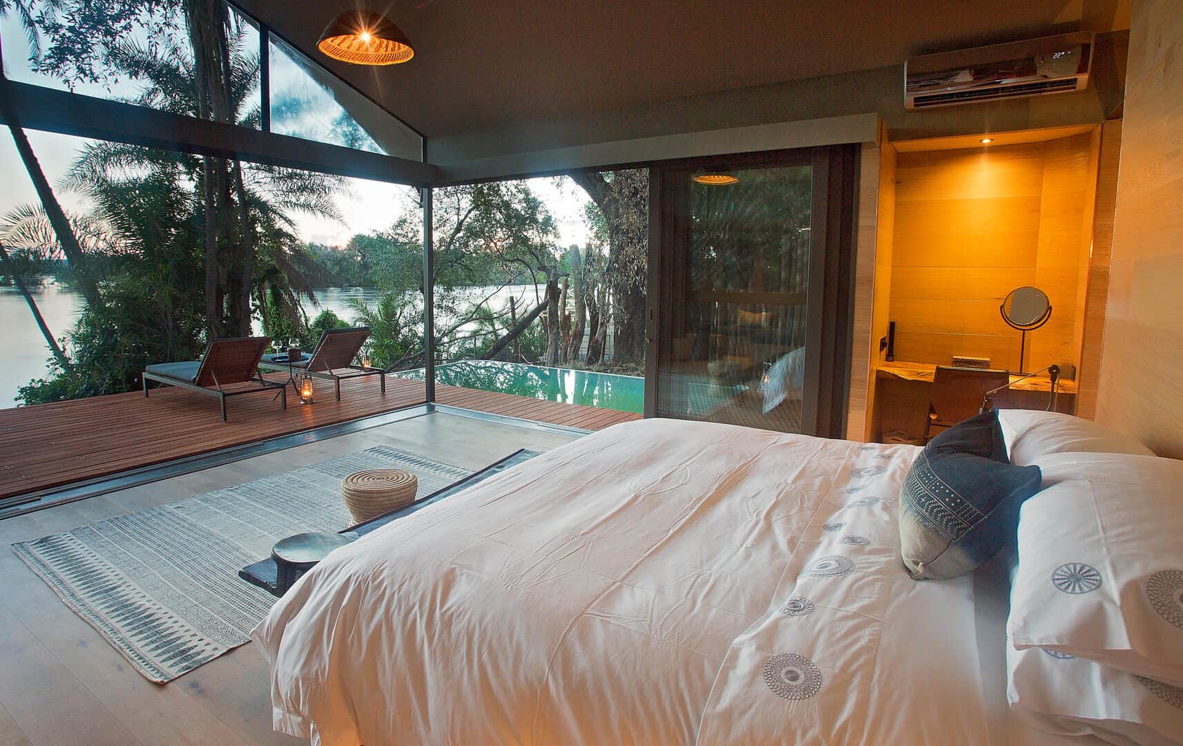Thorntree River Lodge is set in Zambia’s Mosi-Oa-Tunya National Park, just a short distance from the famous Victoria Falls. Thorntree River Lodge has been completely rebuilt with an environmentally-conscious design. Drawing inspiration from local customs and culture, it is a modern contemporary design with tented roof structures to maintain the feel of authentic Africa.
