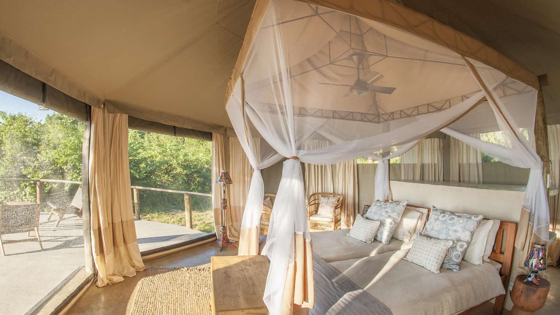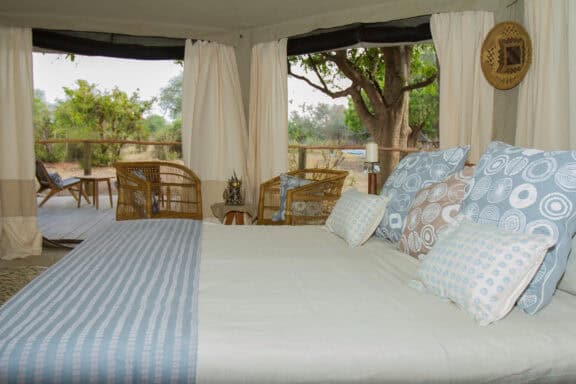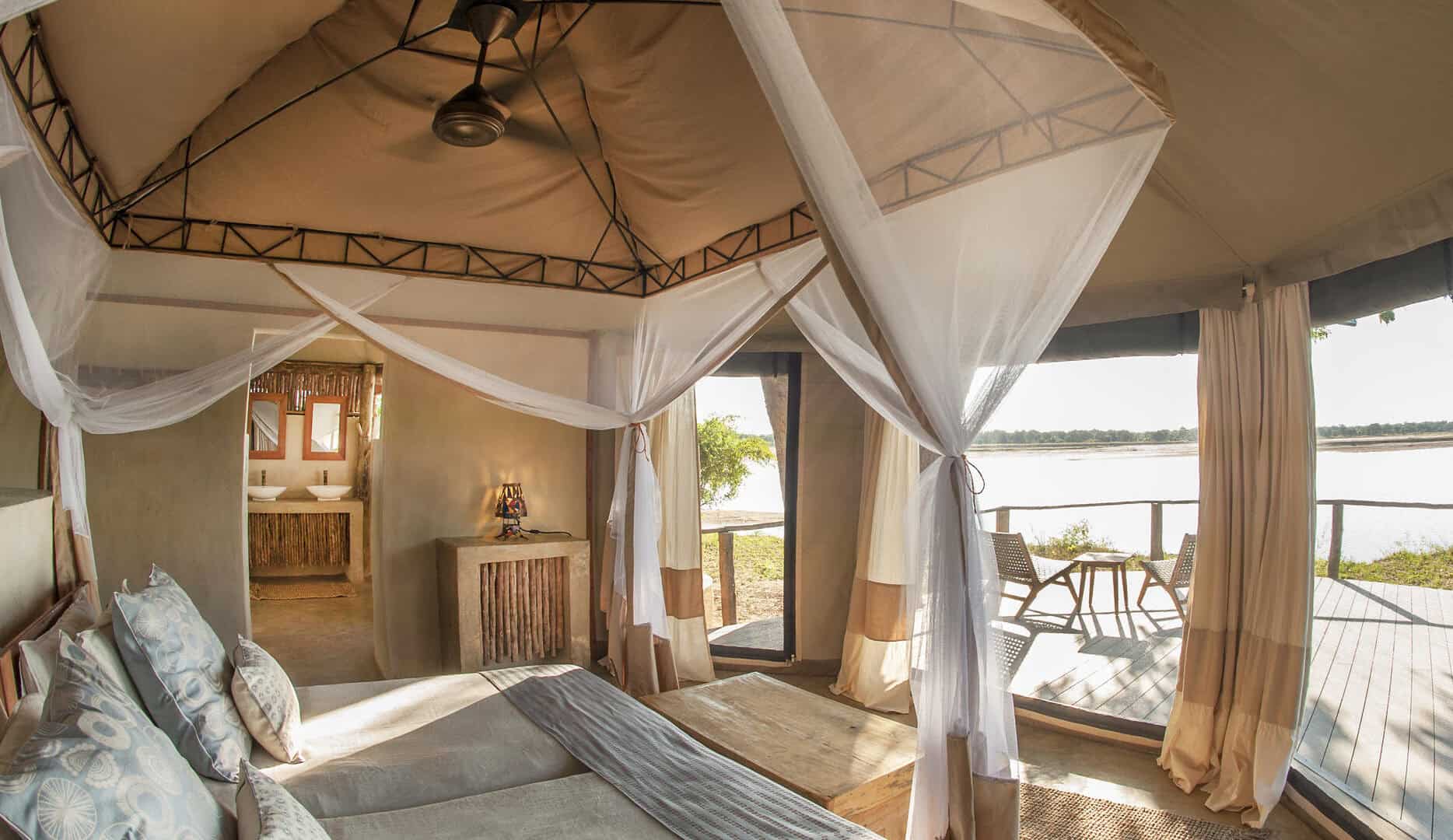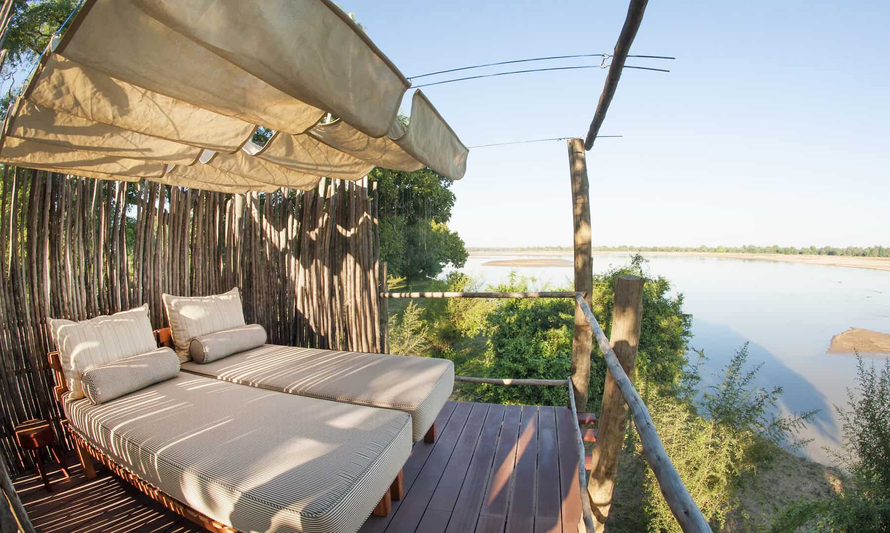 Three Rivers and Island Bush Camps are the only safari operations in the area so you can be assured of a real private safari in a pristine area of the Luangwa Valley. The camp includes five sophisticated tents, each with its own raised sleeping platform, with the option of a night under the African sky.