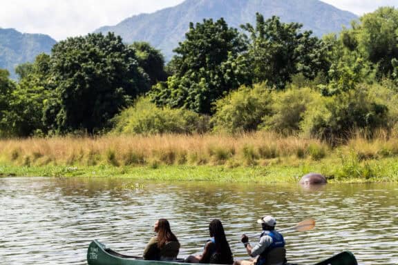 Breakfast 6.00am – 7.00am. Watch the hippos stir and early morning game drinking from the river bank in front of you while you sip hot coffee and enjoy a light breakfast buffet.