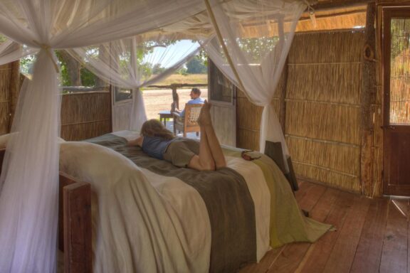 Between game drives, relax into the cosy ambiance of the camp, listening to the resident hippo pod and watching kingfishers hover and dip delicately over the water’s surface. There is no thrill like hearing the lions calling all night, then heading out at first light to track them by foot through the bush.