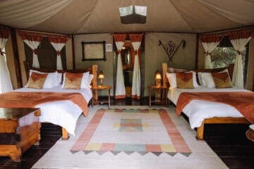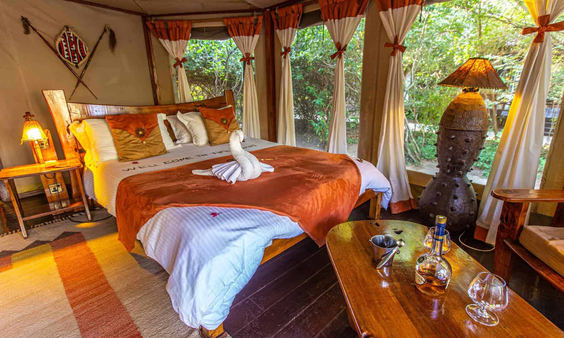 Tipilikwani’s 20 tents enjoy river frontage and are decorated with warm, rich Maasai colors. The family tents have a stand alone bath tub in addition to showers. Excellent food, personalized service and traditional Kenyan hospitality further compliment the prime location.