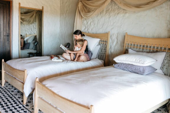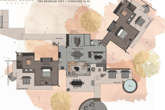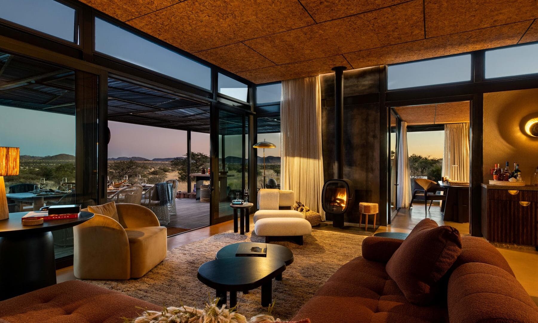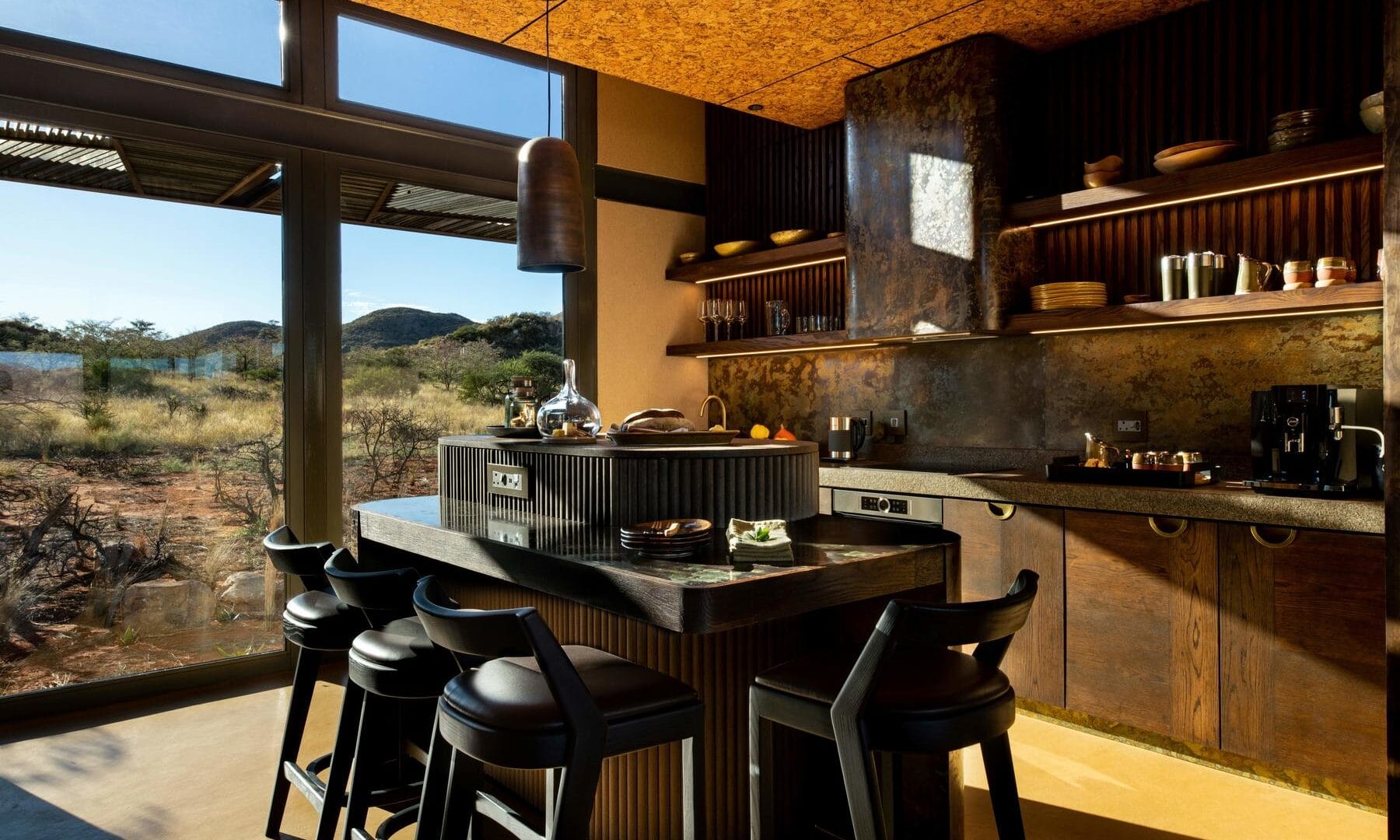 The camp comprises 4 one-bedroom homes and 2 two-bedroom homes, spanning over 300 square metres (about 3200 square feet) and over 400 square metres (about 4600 square feet) respectively. In Setswana, the name, Loapi, means ‘the space below the clouds’, aptly reflected in the camp’s environmentally sensitive, modular design suspended between earth and sky. All the elements of a safari camp have been incorporated into spaces conducive to communal dining and relaxation both indoors and outdoors, always with incredible, uninterrupted views across the valley. There are also private spaces to retreat into, including a private study.