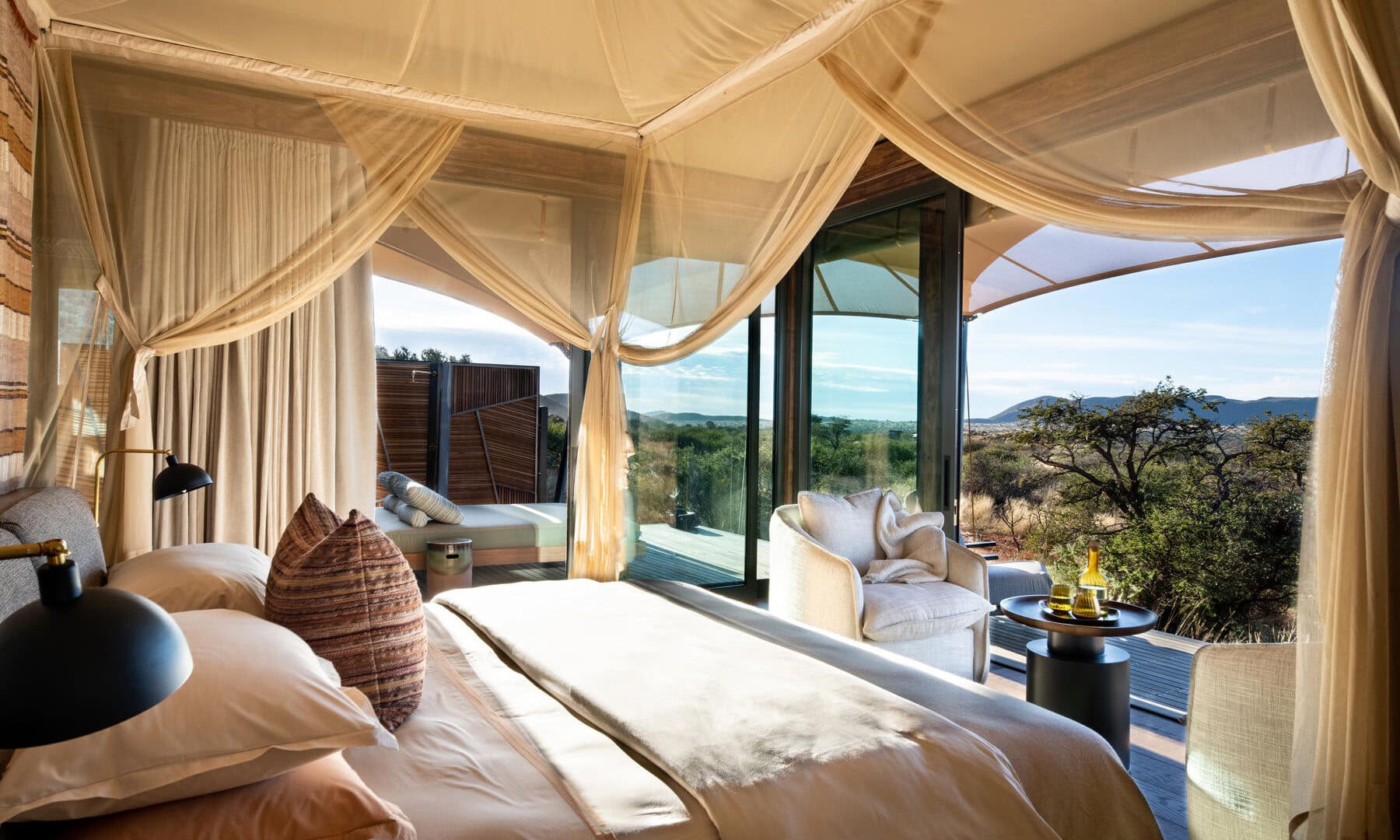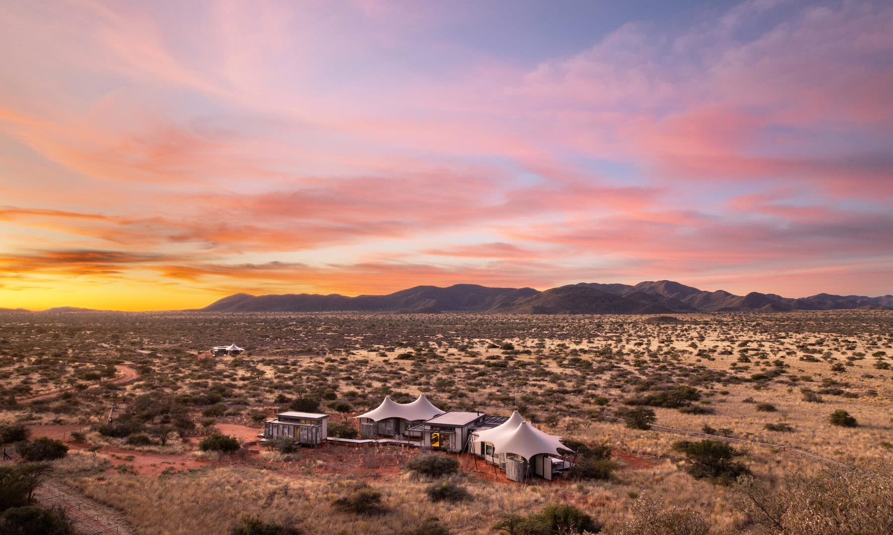 Inspired by a new mood of unfiltered adventure, Loapi Camp evokes the carefree, nomadic spirit of camping and a return to a true wilderness experience that is both private and exclusive. There are six individual tented safari homes, each functioning as a stand-alone, independently run mini camp. Located in a beautiful and secluded valley, Loapi invites deep engagement with the southern Kalahari in all its unfettered, changeable beauty.