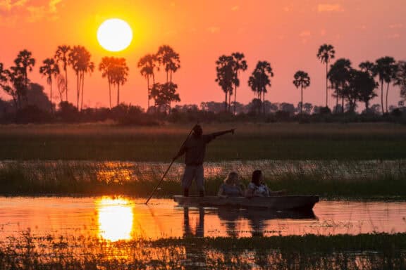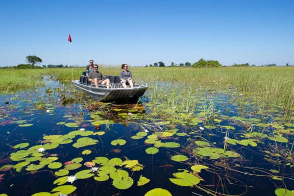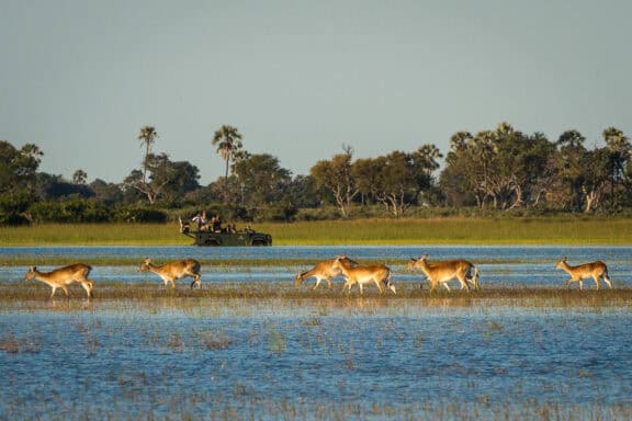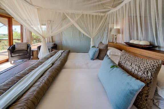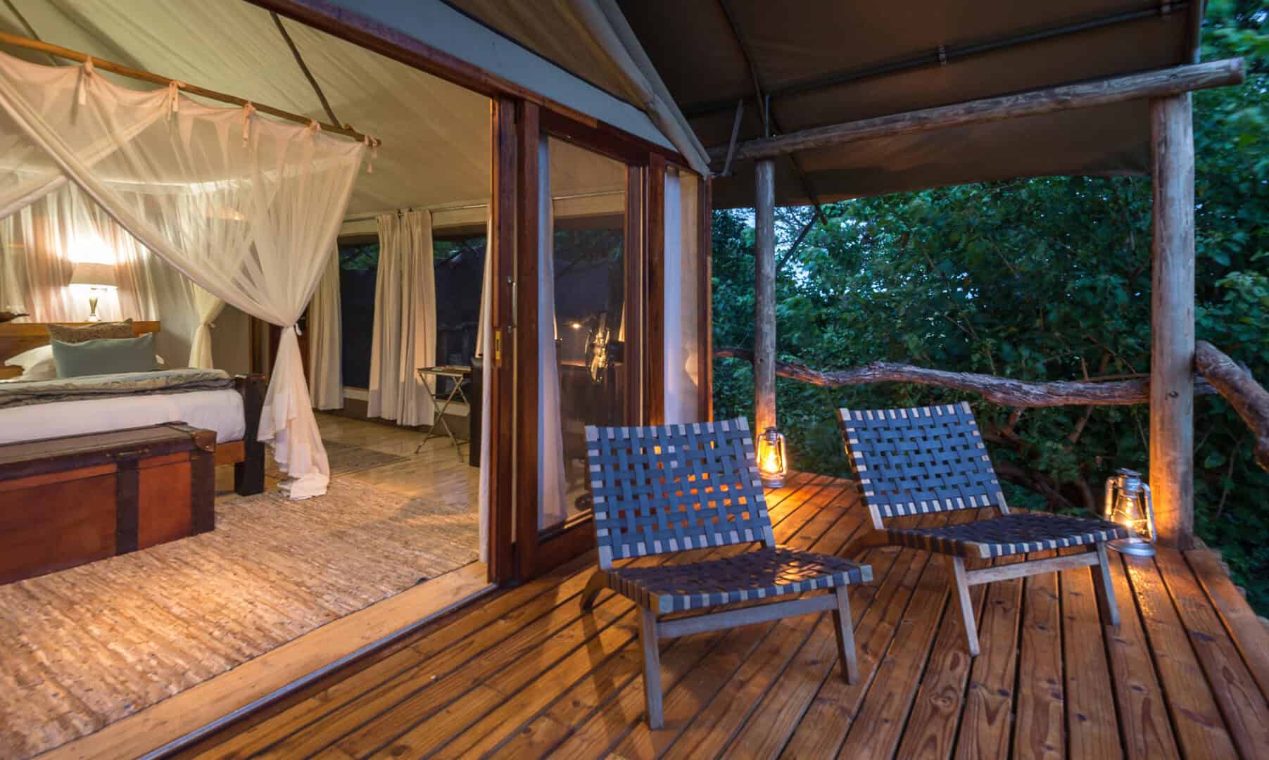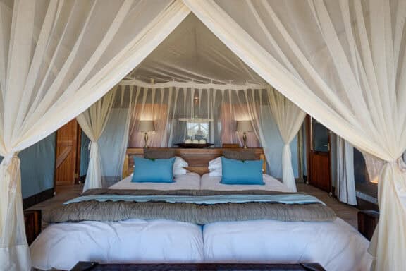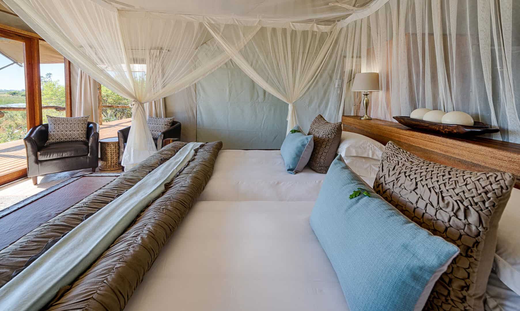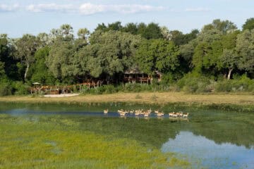 Eight guest tents (including one designed for families) offer breathtaking floodplain views from their elevated positions. In addition to the drama and excitement of game drives, seasonally-available water activities facilitate a different pace and perspective.