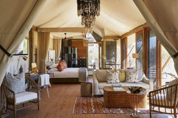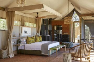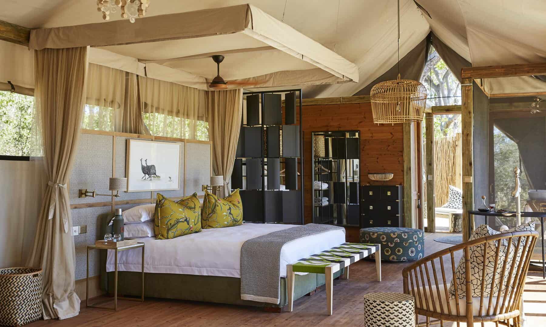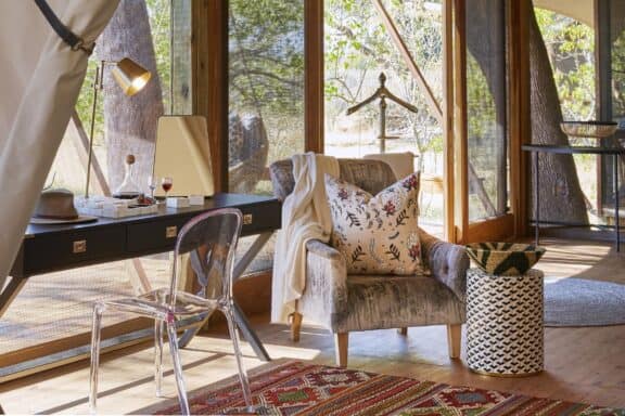 At Tuludi itself, we wanted to capture the magic of being enfolded in nature and the serenity and space that comes with it. Picture seven, tree-house style rooms, shaded by the boughs of cool leadwood trees, sophisticated interiors that mix the contemporary with the traditional, and airy spaces, dotted with intriguing maps, botanicals and treasures from around the area. The result? An exclusive oasis that you’ll be delighted to return to after a day exploring the extraordinary ecosystem.