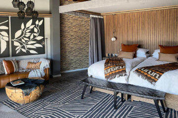 The Luxury Suites boast spacious en-suite bedrooms with indoor and outdoor showers, private wrap-around decks, and personal plunge pools overlooking a wildlife-rich valley. The Family Suites comprise two interconnected bedrooms sharing a comfortable lounge area that opens onto a private deck with a plunge pool. This innovative design incorporates retractable doors and windows, creating an open, airy atmosphere that connects interior spaces with the wild bush environment.