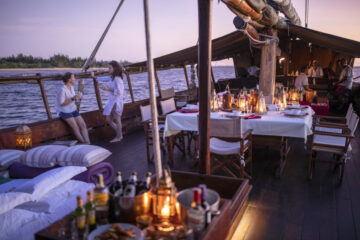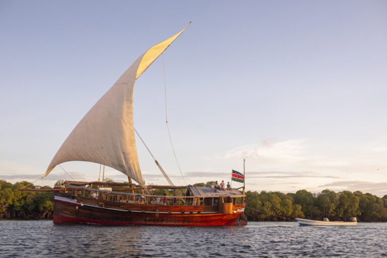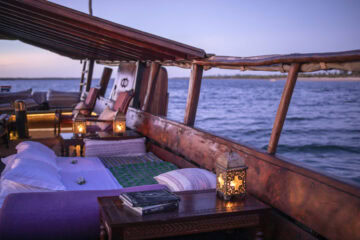 Located in Kenya’s Lamu Archipelago, Tusitiri Dhow is a meticulously restored traditional wooden sailing vessel with over 50 years of history. Originally built for trading along the Indian Ocean routes, this dhow has been transformed into a luxurious floating retreat available exclusively for your private use, a fantastic way to end a more traditional safari.