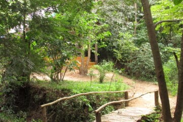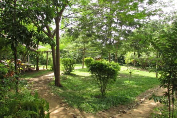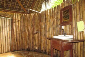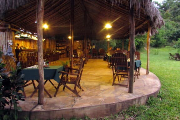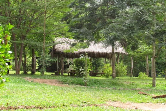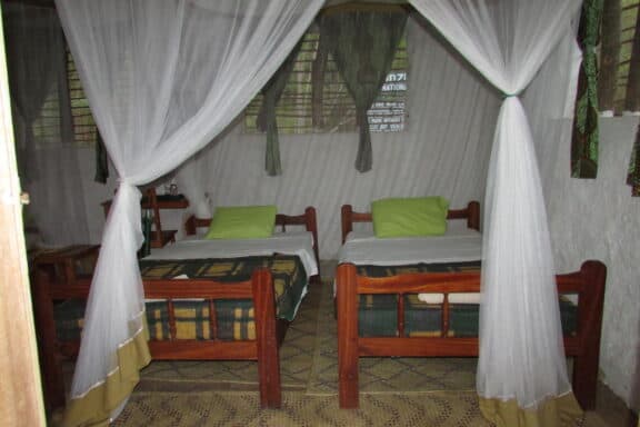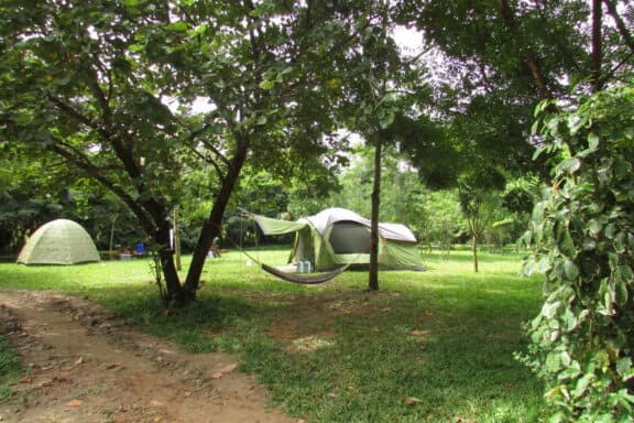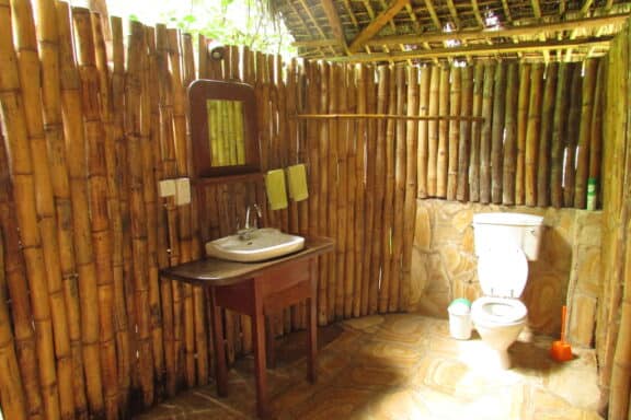 Hondo Hondo offers accommodation to suit all tastes. For those that enjoy a touch of luxury on an African rainforest adventure, there are six luxury en-suite tented rooms. For the budget conscious, there is the alternative experience of sleeping under thatch in the thatched hut village on the hill. For a night under canvas, there is a camping area where visitors can put a tent up and relax, with facilities that include a bar and restaurant as well as solar heated hot water showers and western style lavatories.