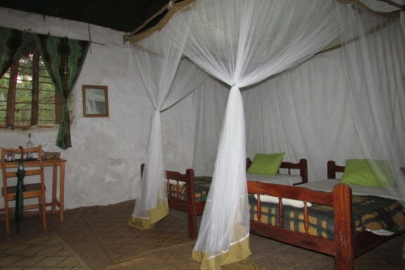 Hondo Hondo is situated on the border of the Udzungwa Mountains National Park, close to the National Park Headquarters and main gate at Mangula. The lush green site lies on the border of the pristine rainforest and offers excellent views of the forest canopy, in which there are several species of monkey, including the endemic Udzungwa Red Colobus, the remarkable Sanje Crested Mangebey, and the Black and White Colobus. A number of different hornbill species fly in over the forest edge and settle in trees along the borders of the rainforest in large numbers every evening at sunset, and the valley echoes with their distinctive calls.