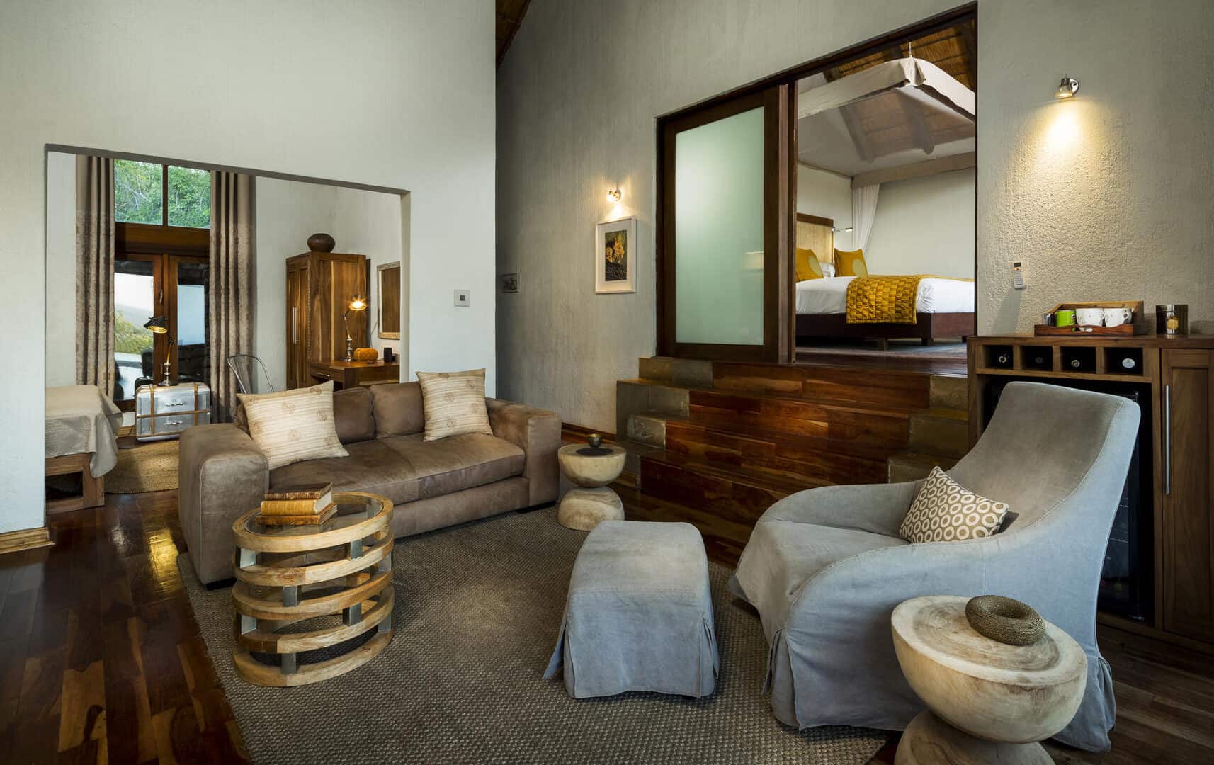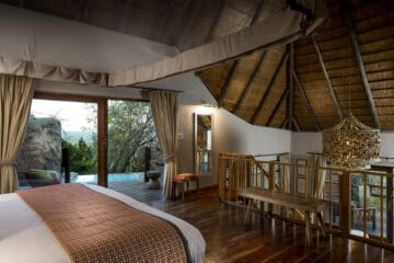Rock Lodge is perched high on the summit of a koppie and provides panoramic views over miles of bush, the wildlife roaming within, and the beauty of the lowveld below.