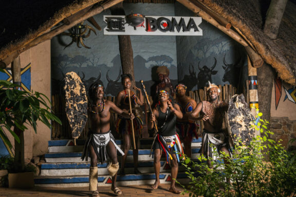 Dining options include the a la carte MaKuwa-Kuwa Restaurant, the more casual Buffalo Bar and The Boma – Dinner & Drum Show. The Boma Café, set in a tranquil garden setting and located close to the Lokuthula Lodges, offers breakfast and light meals until 4.30pm.