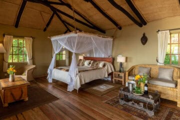The magnificent Virunga Lodge in Rwanda is one of Africa’s most loved lodges. Perched high on a ridge with dramatic views overlooking the Virunga Volcanoes, Musanze valley, Lake Bulera and Lake Ruhondo.