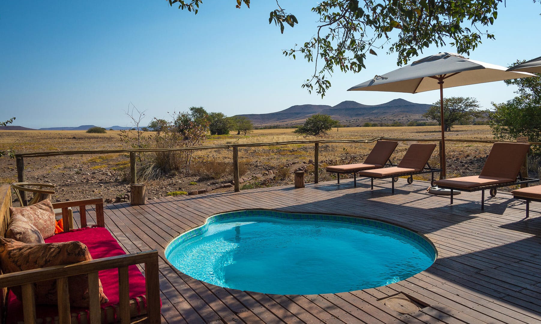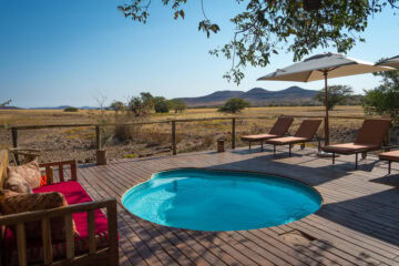 Wilderness Desert Rhino Camp offers an original, exclusive wilderness experience and the possibility of seeing some of the largest free-ranging population of desert-adapted black rhino in Africa. The desert plains – transformed overnight by summer rains – are starkly scenic, and home to other unique species, from Hartmann’s zebra and giraffe, to the bizarre welwitschia plant.