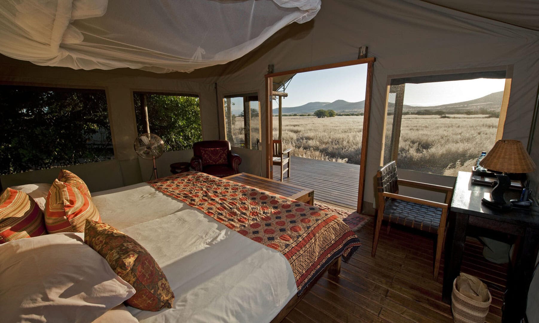 The camp consists of eight comfortable Meru-style tents with en-suite bathrooms, and shady main area with refreshing plunge pool. Run in conjunction with Save the Rhino Trust (SRT), Wilderness Desert Rhino Camp offers rhino tracking by vehicle and on foot with experts from this conservation NGO.