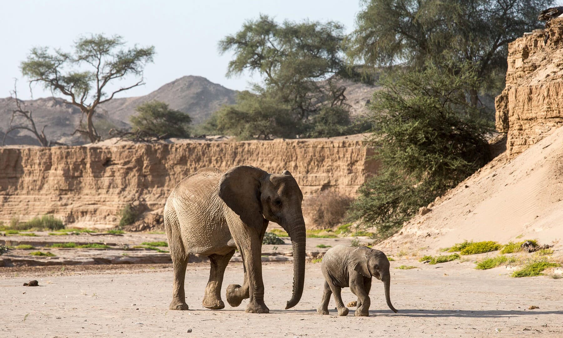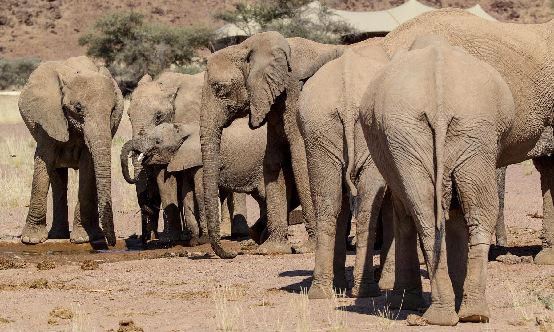 Eight large en-suite tents (including one family unit) and the main area provide shady viewpoints, while nature drives into the surrounding area reveal a wealth of desert-adapted wildlife. Desert-adapted lion and brown hyena may also be glimpsed in this vast but far from lifeless landscape.