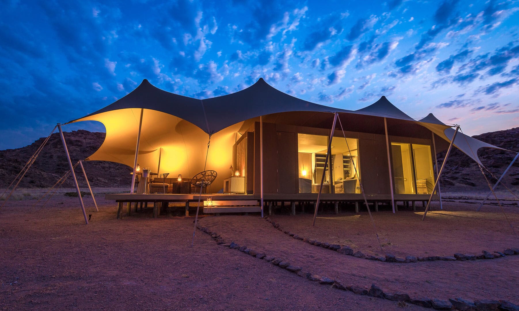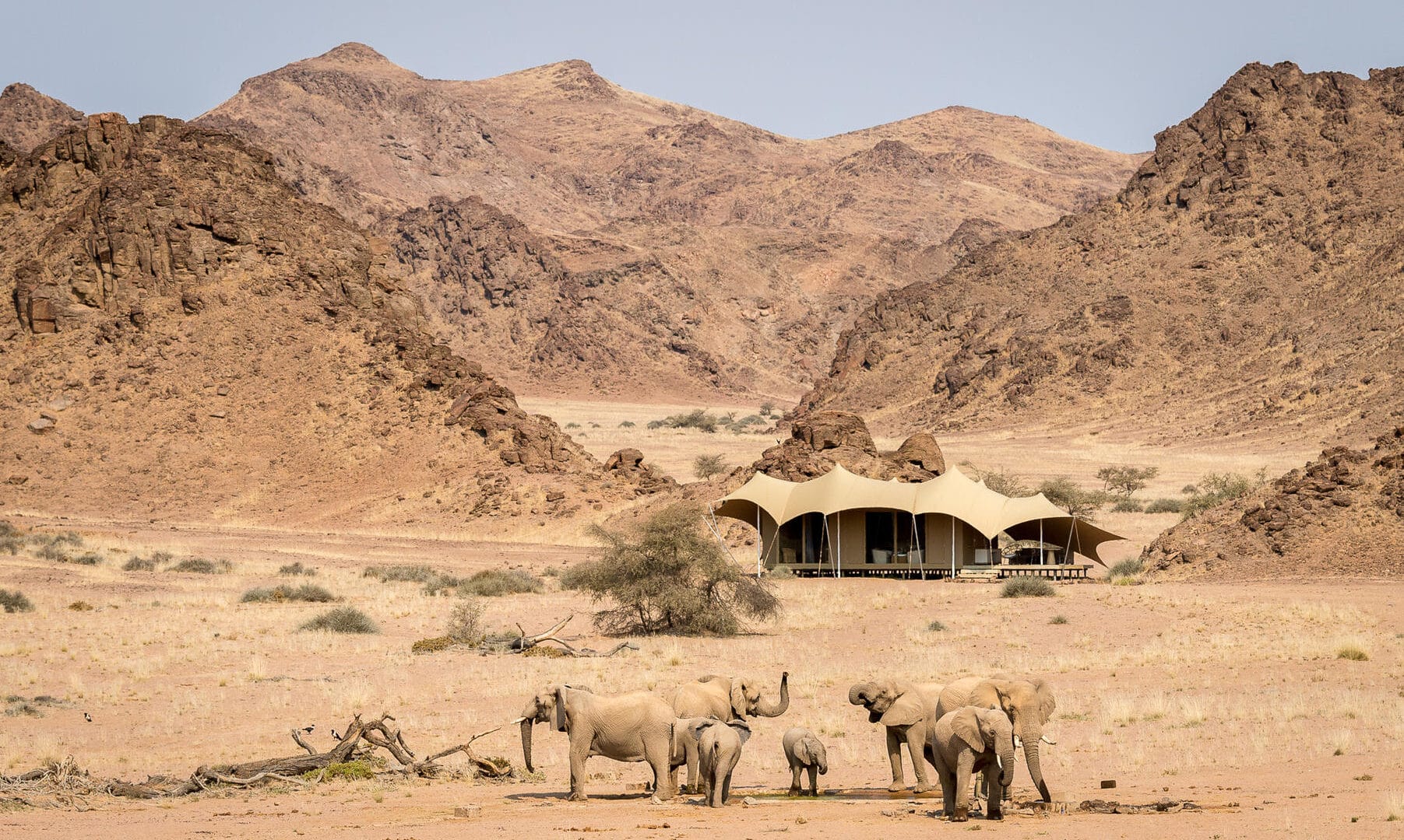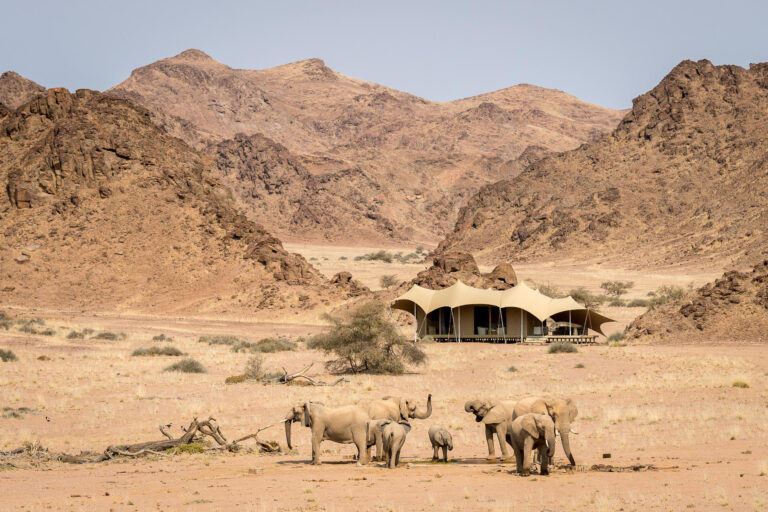 The name “Skeleton Coast” conjures up romantic images of desolate beauty, and proudly remote Wilderness Hoanib Skeleton Coast Camp in the Kaokoveld does not disappoint. The dry bed of the Hoanib River supports a thin green ribbon of vegetation and the wild beaches of the Atlantic coast are within reach, with their noisy seal colonies and eerily quiet shipwreck remnants.