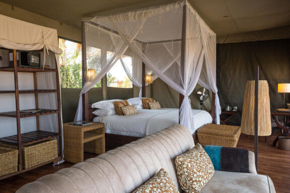 Often acknowledge as the most luxurious accommodation in Kafue, Wilderness Shumba is open during the dry season. It comprises six luxury guest tents (including a family room). Game drives are complemented by seasonal boating.