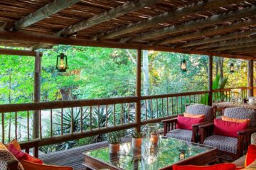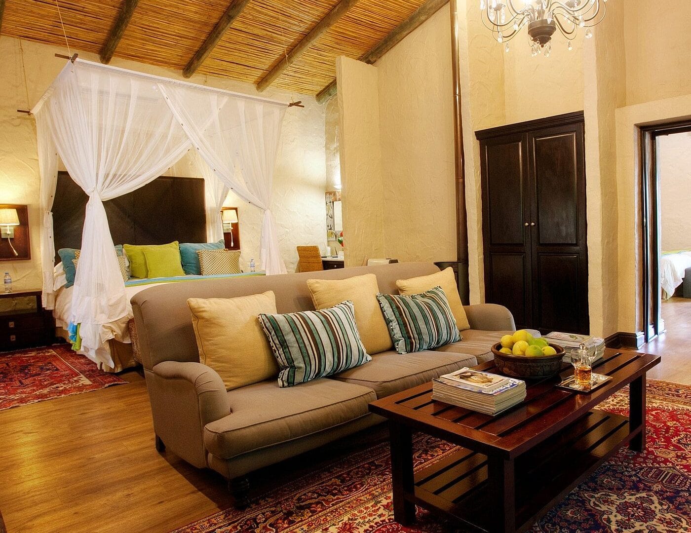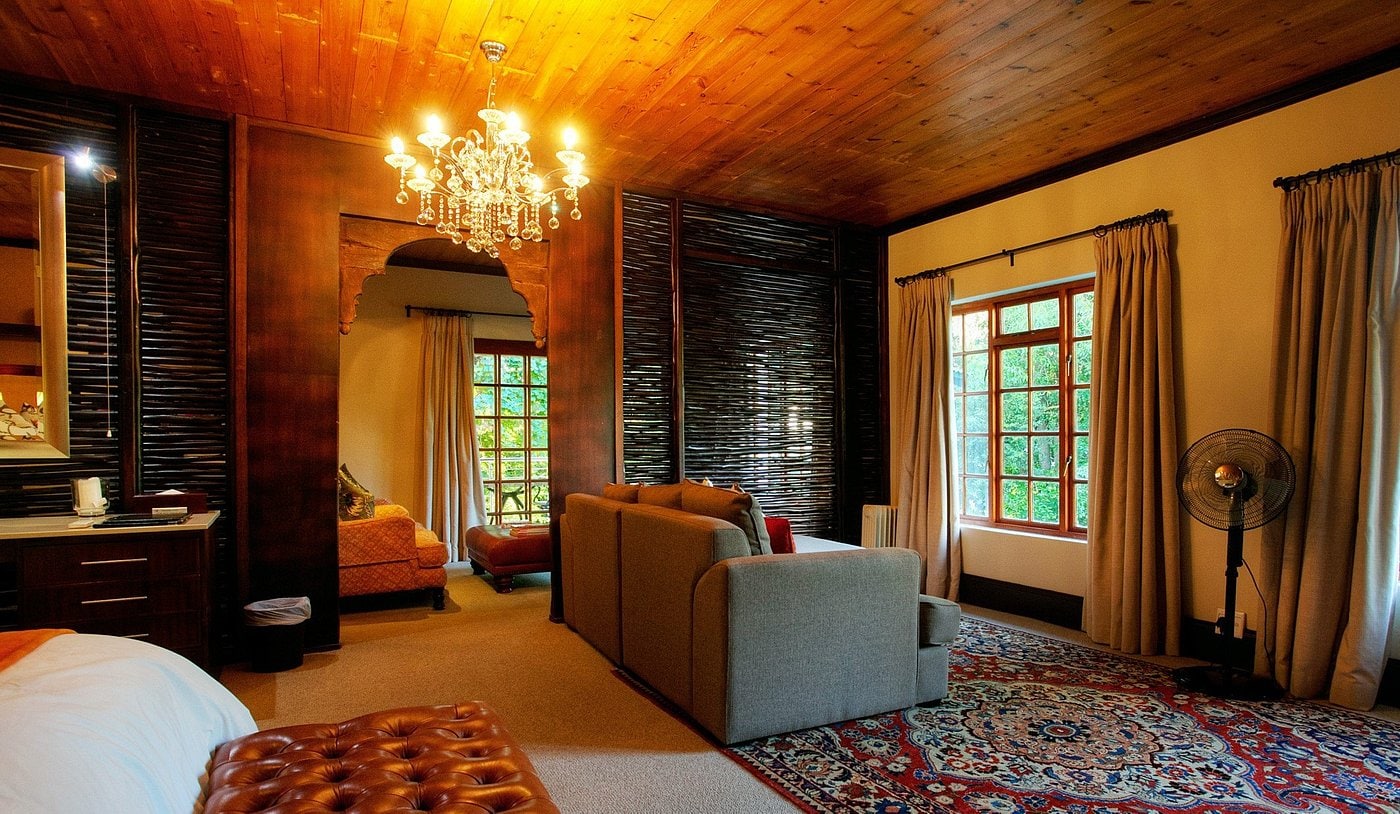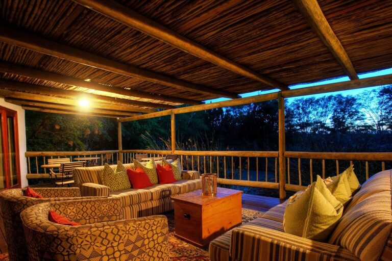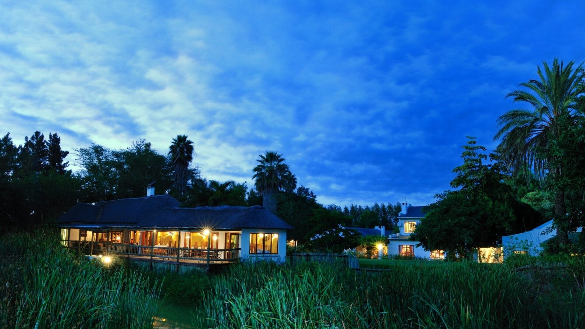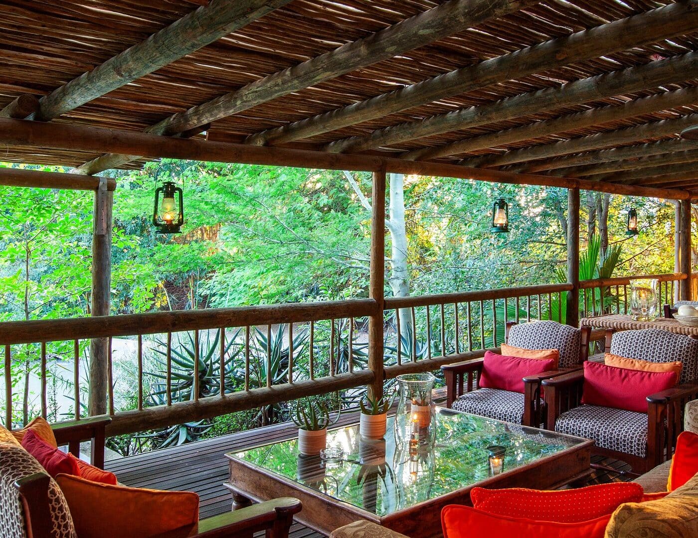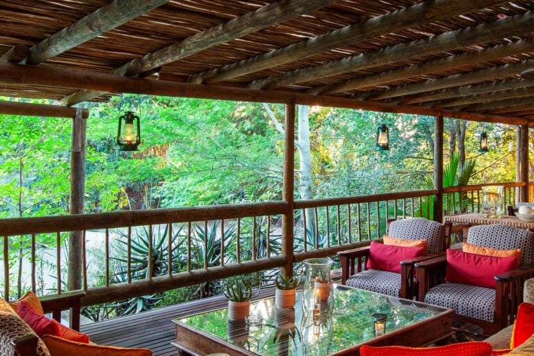 There are many places to unwind, including sitting rooms inside and outside, a library, a sundowner deck, and a chill room.