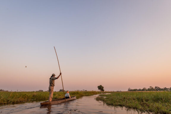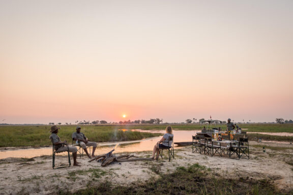 Expect mokoro trips in traditional canoes, fishing, and visits to the local community village. There’s even an opportunity to celebrate golden hour in a special sundowner spot on the banks of the intricate waterways.