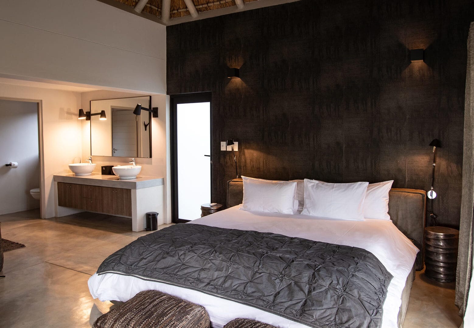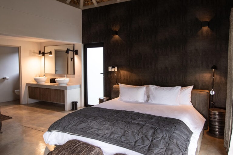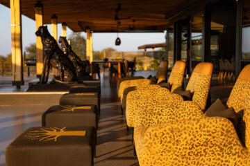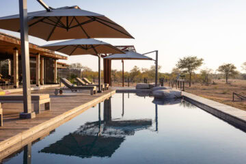 The lodge features airy suites that open out to expansive views and offer thoughtful touches such as smart TVs, Wi-Fi, minibars, and L’Occitane amenities. The central areas include a bar, pool, and lounge, while a small spa treatment space can be arranged for those looking to unwind between game drives.