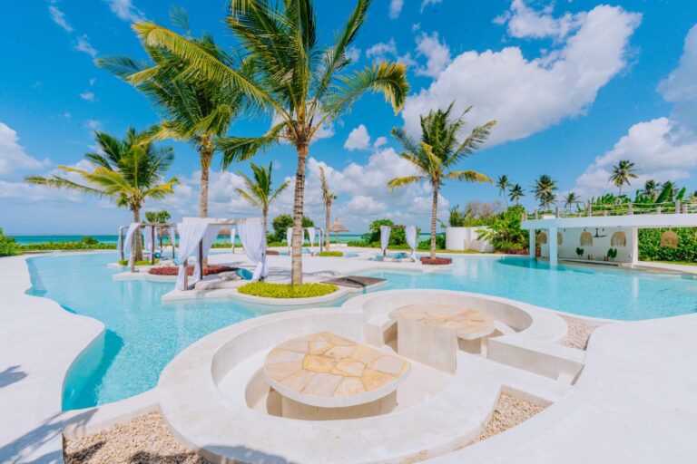 Overlooking the waters of the Indian Ocean on Zanzibar’s East Coast, Ycona Luxury Resort offers a slice of heaven in the Marumbi area. This family-owned boutique eco-resort features 40 independent private villas spread over 60,000 sqm of nature, where modern design, luxury, and elegance blend with an African touch.