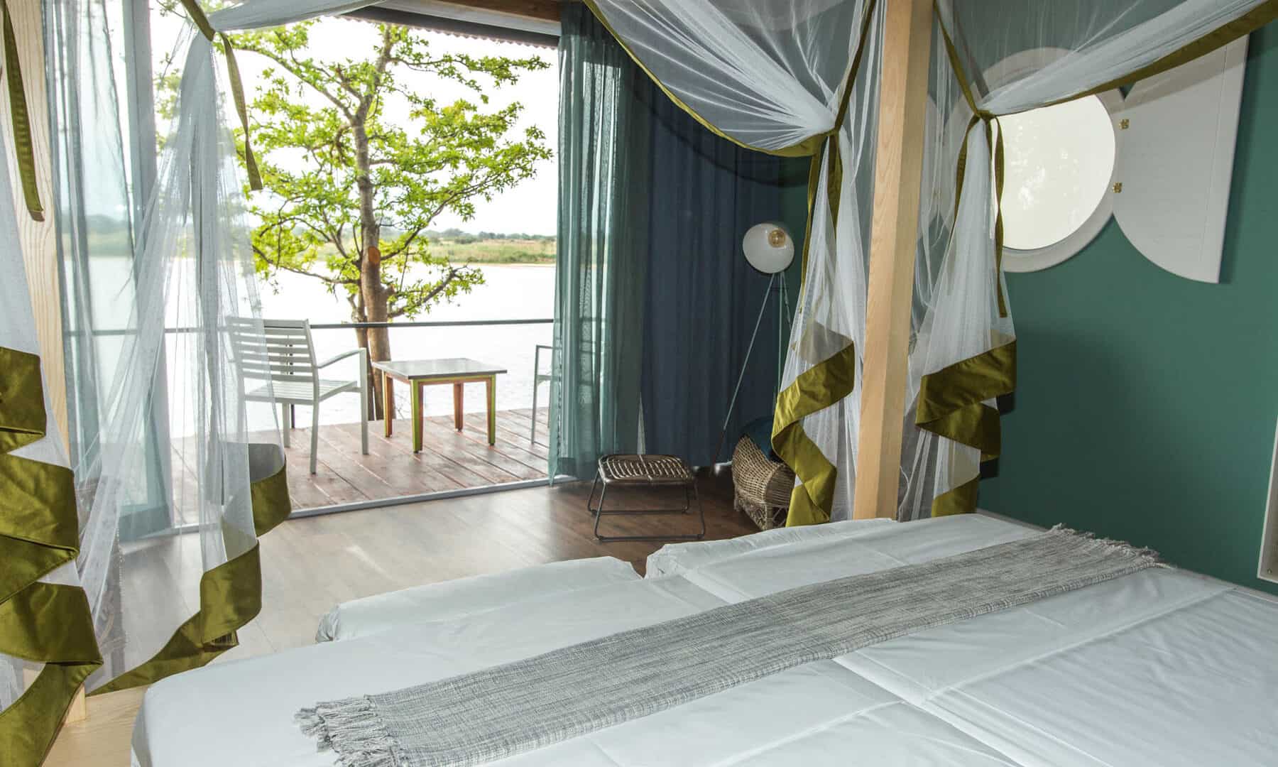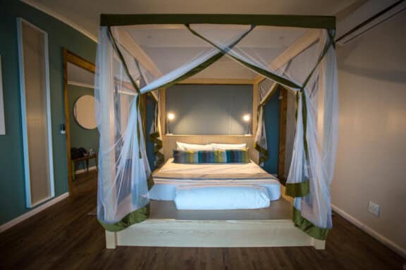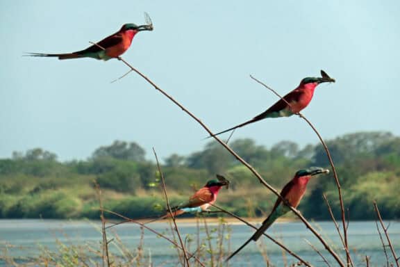 Along the edge of the mighty Zambezi River, lies the water sanctuary of Zambezi Mubala Lodge & Camp. A bird-lover’s dream, this lodge is home to one of the largest colonies of Carmine Bee-eaters, that live along the banks of the majestic Zambezi. Birds are often joined by the occasional hippo or crocodile, baking in the shallow waters along the banks. Guests can relax and watch the colours of life sail along the steady current of the river.