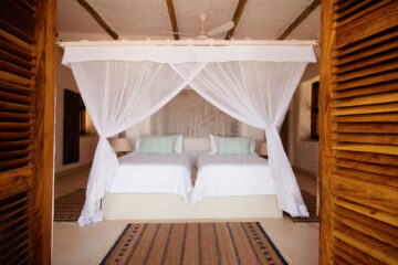 Ziwani Lodge, located on an escarpment overlooking Lake Eyasi in Northern Tanzania, offers sweeping views’ of the Rift Valley. The property is a fully-fledged eco-lodge; running solely off solar and wind power. The inspiration of the construction and design came from the local architecture around the area.