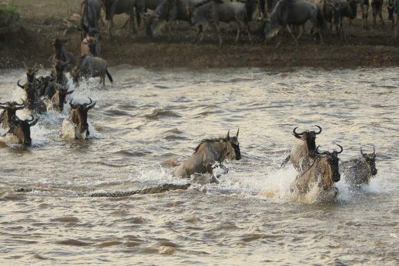 Watching the wildebeest crossing the Mara River in the Northern Serengeti was an absolute highlight for Bkaptured photography. Bkaptured shot this photos having no idea that the wildebeest in the centre of the frame was putting in a solid performance in the solo synchronised river jumping competition. Without a doubt, this little manoeuvre saved its life as the crocodiles had been reasonably successful at this spot on prior days.