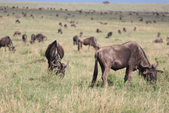 Big herds of wildebeest across the Lookout Hill plains today. very big crossing at lookout also heading to the Mara triangle. I happened to have missed out the crossing though.