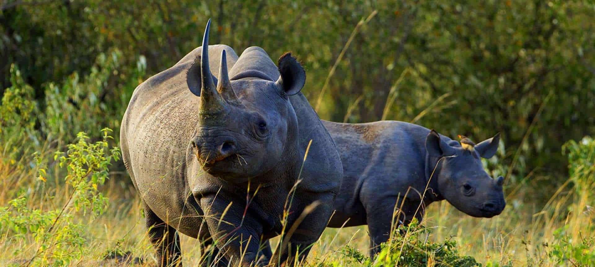 Description: Recognised by its two prominent horns and thick, hairless skin, the black rhino is a potent symbol of Africa’s wildlife. Many conservation efforts have been launched to protect these animals.