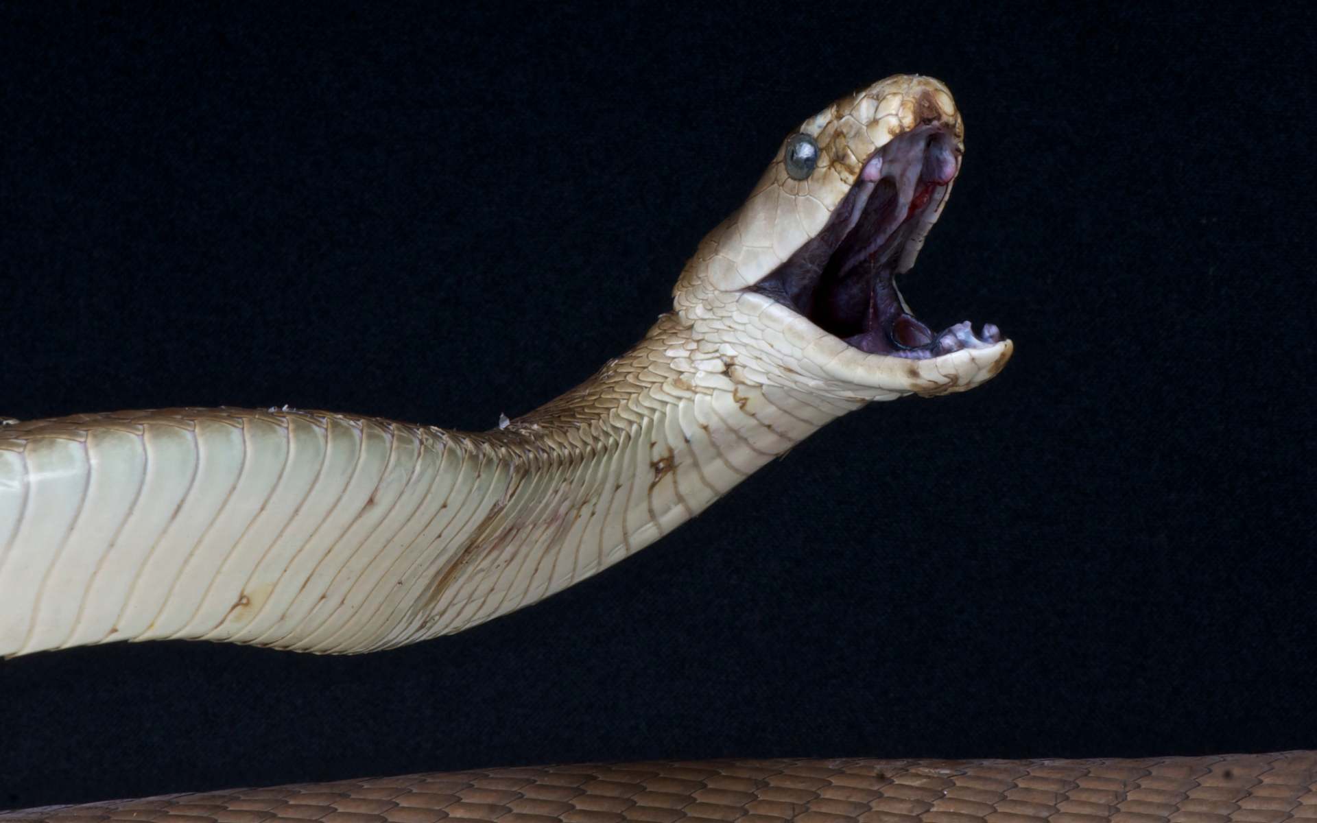 The black mamba can deliver up to 400 mg of venom in one attack, which can include multiple strikes. Its bites don’t typically result in necrosis or swelling, so at first, attacks can seem inconspicuous. However, the venom can knock down a human adult in just 45 minutes, and if the correct antivenom isn’t administered in time, death can occur in as little as seven hours.
