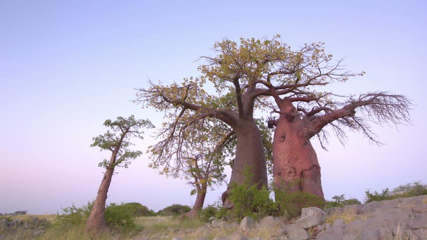 The baobab, called the mowana baobab in Botswana, is also the world’s largest succulent. Known for their massive trunks and long lifespans, some baobabs are believed to be over a thousand years old. Baobabs are predominantly found in rocky woodlands with low rainfall across dry, hot areas in Botswana, Namibia, South Africa, and Mozambique.
