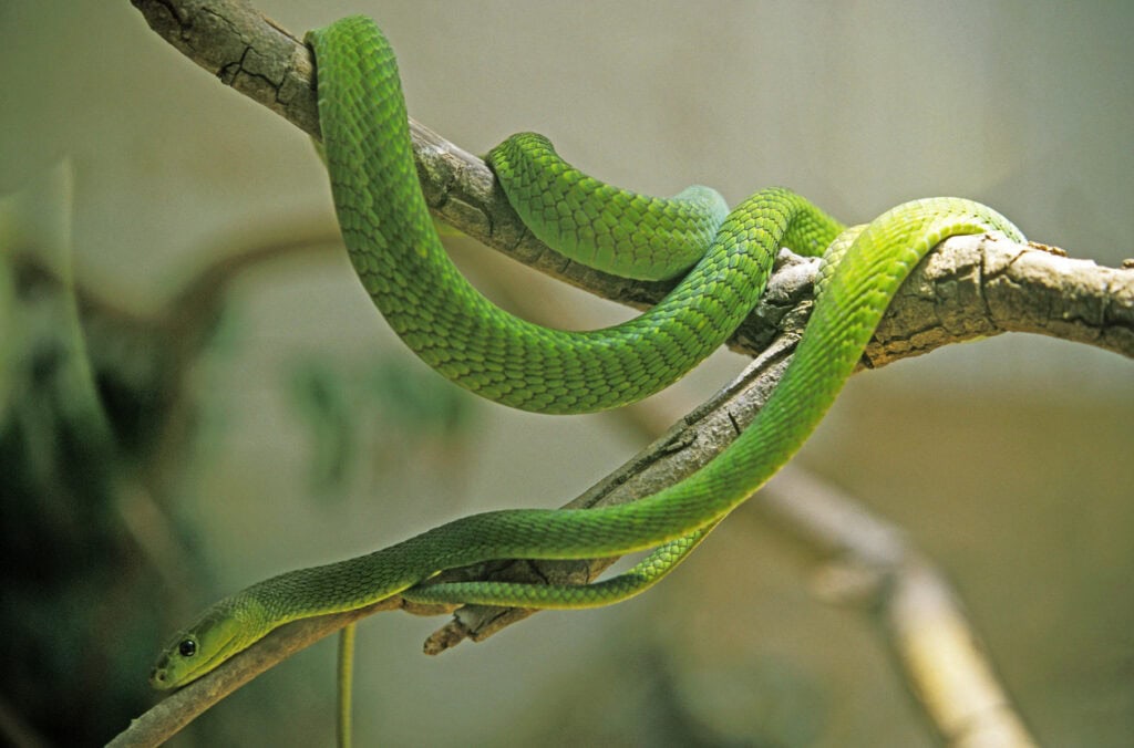 This snake prefers coastal areas with dense, shaded vegetation. It can be found living in trees in lowland tropical rainforests, coastal bushlands, and montane forests. These bright green mambas are opportunistic hunters and spend their days either stationary while waiting for prey to wander within their reach, or actively hunting small prey in the trees, such as birds and their eggs, lizards, and bats. These snakes are beautiful but highly venomous, with a neurotoxic venom that can lead to respiratory paralysis and death in as little as 30 minutes. Places you’ll find the East African green mamba include, but are not limited to: