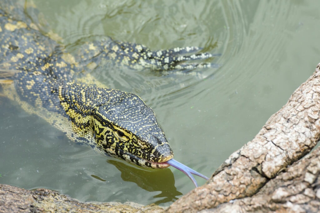 Also known as the water monitor, the Nile monitor lizard is the largest lizard in Africa. A versatile predator, it can climb, run, and swim with equal ease. Nile monitors have muscular bodies, strong legs, and powerful jaws. They also have sharp claws which they use for climbing, digging, defense, or tearing at their prey. They have forked tongues and possess highly developed olfactory properties. Nile monitors are highly aquatic and can stay underwater for up to 15 minutes. They feed on fish, snails, frogs, crocodile eggs and babies, birds, small mammals, insects, and carrion. Places you’ll find the Nile monitor lizard include, but are not limited to: