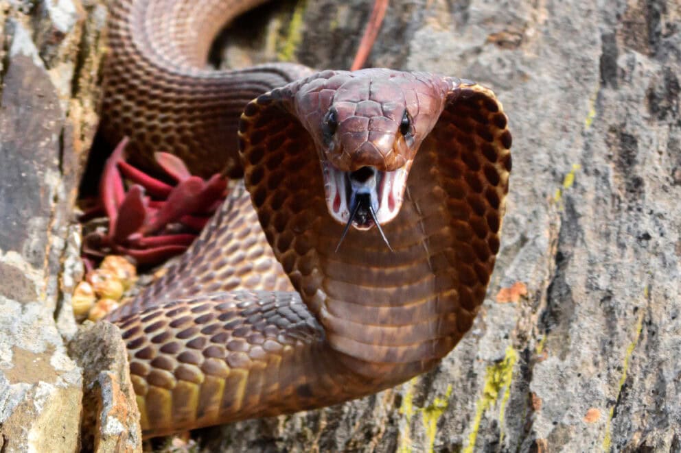 The Cape Cobra is one of four non-spitting cobras found in southern Africa. When disturbed, it will raise its head and extend its ribs to form a broad hood, accompanied by a loud hissing sound. Cape cobras have fixed front fangs which they use to bite their prey and inject a very powerful and fast acting neurotoxic venom, which can lead to paralysis and death. The Cape cobra is diurnal and actively hunts during the day. Its prey includes rodents, birds, frogs, lizards, and other snakes. Although found mostly on the ground, it’s able to climb into trees and shrubs to search for food or when confronted. Places you’ll find the Cape cobra include, but are not limited to: