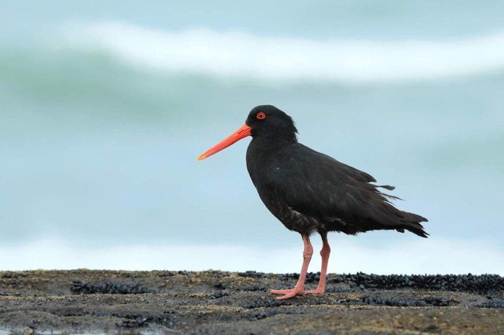 Standing out among the ocean blues and greys of the rocks with its red-orange beak and eye ring, the African oystercatcher is a wader found along the coastlines of South Africa. This near-threatened bird breeds between November and April and is often seen on the West Coast.
