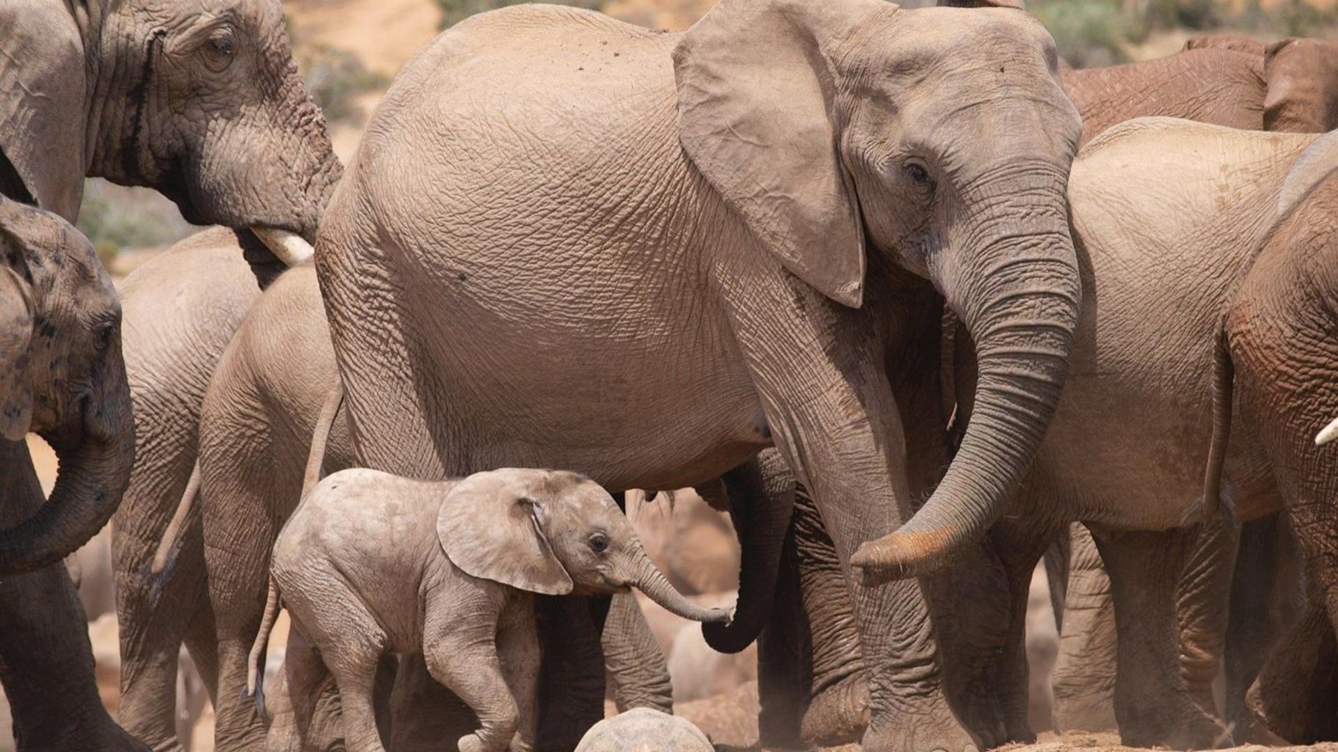 Etosha National Park is home to some of the largest elephants in Africa due to the thick vegetation found in the park in Namibia.