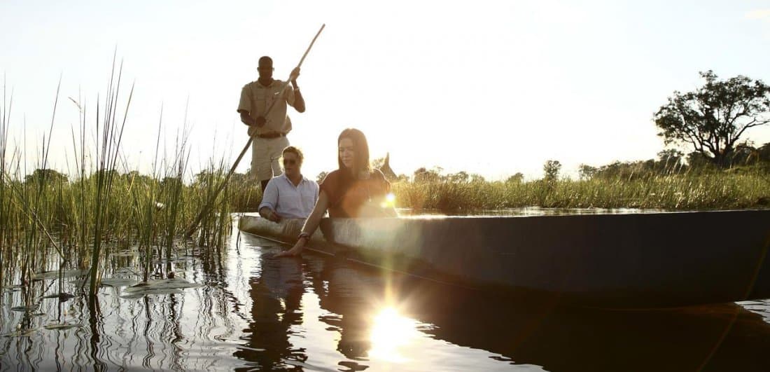 A mokoro ride is a traditional canoe commonly used in the Okavango Delta in Botswana as a popular mode of transport and now utilised for game-viewing safaris. The oarsman stands in the stern and pushes it with the pole. A mokoro ride in the Delta is an absolute must-do activity on a Botswana safari.